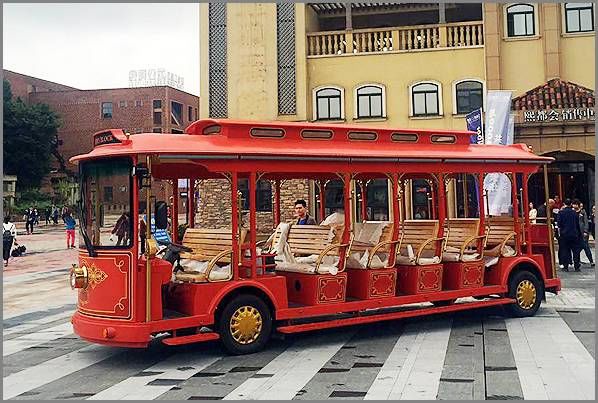 益高EG23座仿古豪華觀光車(出口型)是本公司專為旅游景區(qū)、公園、大型游樂場、封閉小區(qū)、校園、花園式酒店、度假村、別墅區(qū)、城市步行街、機場、港口、碼頭等開發(fā)的乘用車輛。整車性能優(yōu)良、設(shè)計人性、配置高(車架運用航空合金材料,防腐牢固),外觀設(shè)計新穎、內(nèi)飾精致、乘坐舒適安全,是目前國內(nèi)理想的電動旅游觀光車.